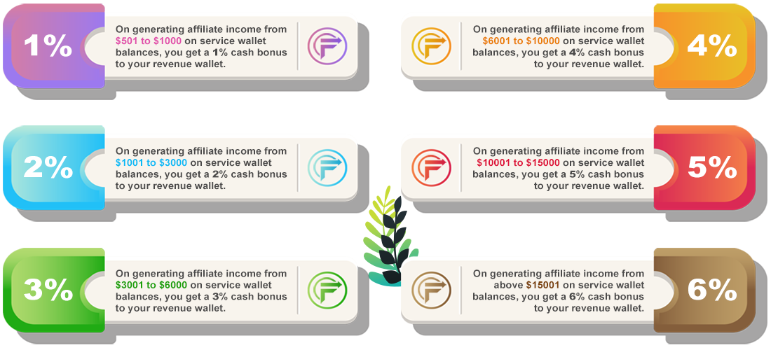 The new initiative by Crest Margin official authority that surely will revolutionize the way you earn affiliate commissions. Here you go! A new blend of BONUS for all users to earn unconditionally on team building hereafter. Not only just referral and binary but an exceptional and additional Bonus will be offered to the potential ones. Bonus Milestone brings you the additional earnings calculated on the accumulated balance of your own Service Wallet (Comprising both Referral Income and Binary Income) which is paid respectively every week. The rate of bonus income shall be decided according to the slab you come under.
